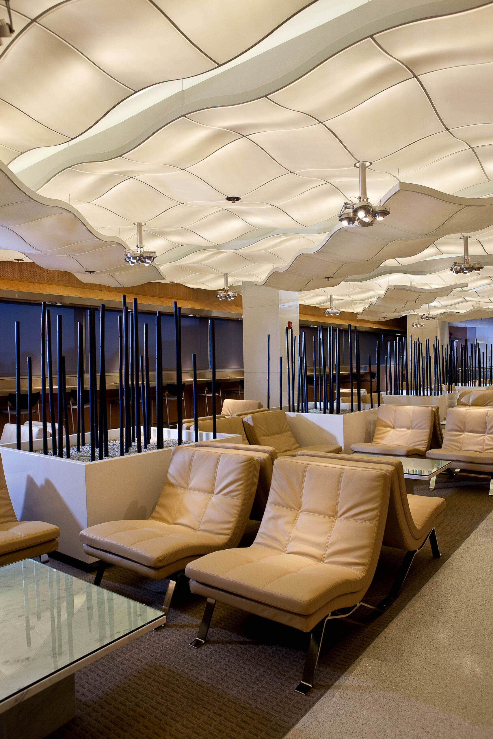 The Delta Crown Room in Miami International airport has been acclaimed as a powerful statement in airport design. Challenging the conventions of drab institutional architecture, the environment incorporates provocative design elements that foster a sense of luxury and wellbeing. The sophisticated composition features environmentally friendly furniture crafted utilizing sustainable materials and a color pallet that reflects Miami’s strong cultural identity.